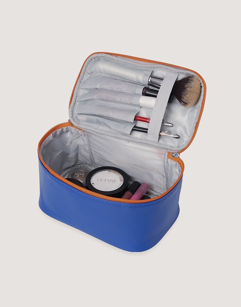 Descrição: Nada melhor para ajudar a manter itens de maquiagem organizados de forma impecável do que um nécessaire sob medida para deixar tudo arrumado com mais praticidade. Feita em poliuretano, ele é impermeável, o que garante mais proteção dos produtos e acessórios guardados dentro dele. Além do espaço para comportar diversos produtos para maquiagem, o nécessaire conta com divisórias dedicadas para guardar lápis e pincéis na parte interna de sua tampa, tornando a organização ainda mais simples para que a preocupação seja apenas fazer o melhor look para o dia a dia ou uma ocasião especial. Contém alça de mão costurada para tornar o transporte mais ágil.