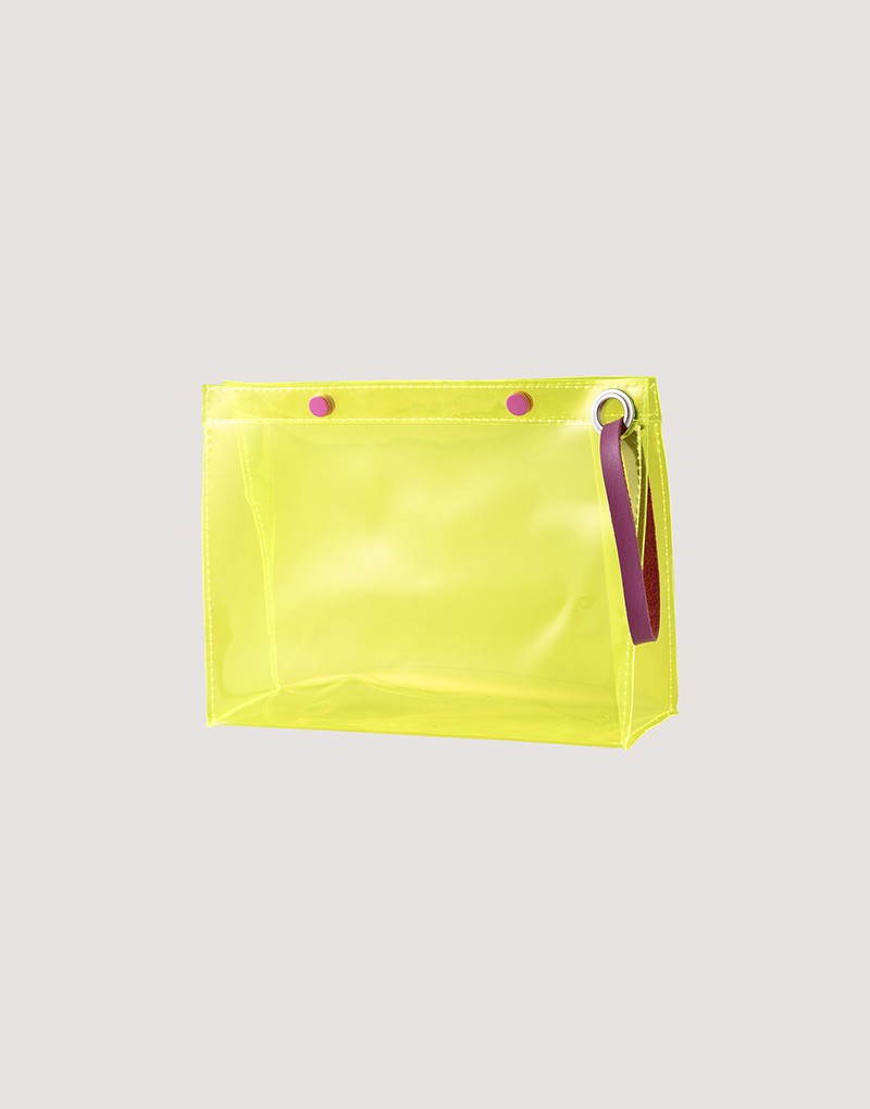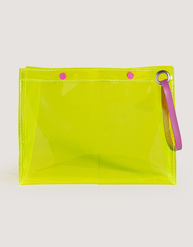 Feita em PVC translúcido neon, com acabamento vibrante e alça de mão em argola colorida, essa necessaire une utilidade e estilo de um jeito nada óbvio. Compacta e resistente, é perfeita para organizar itens de beleza, praia, academia ou viagem com personalidade.