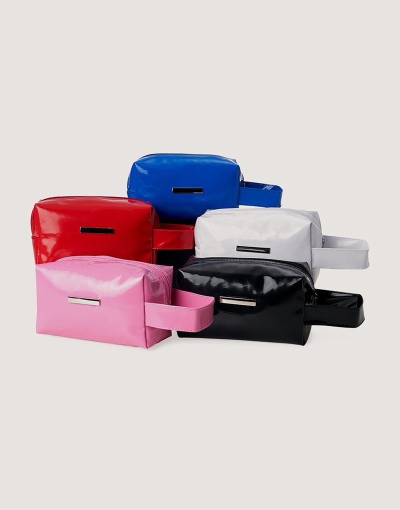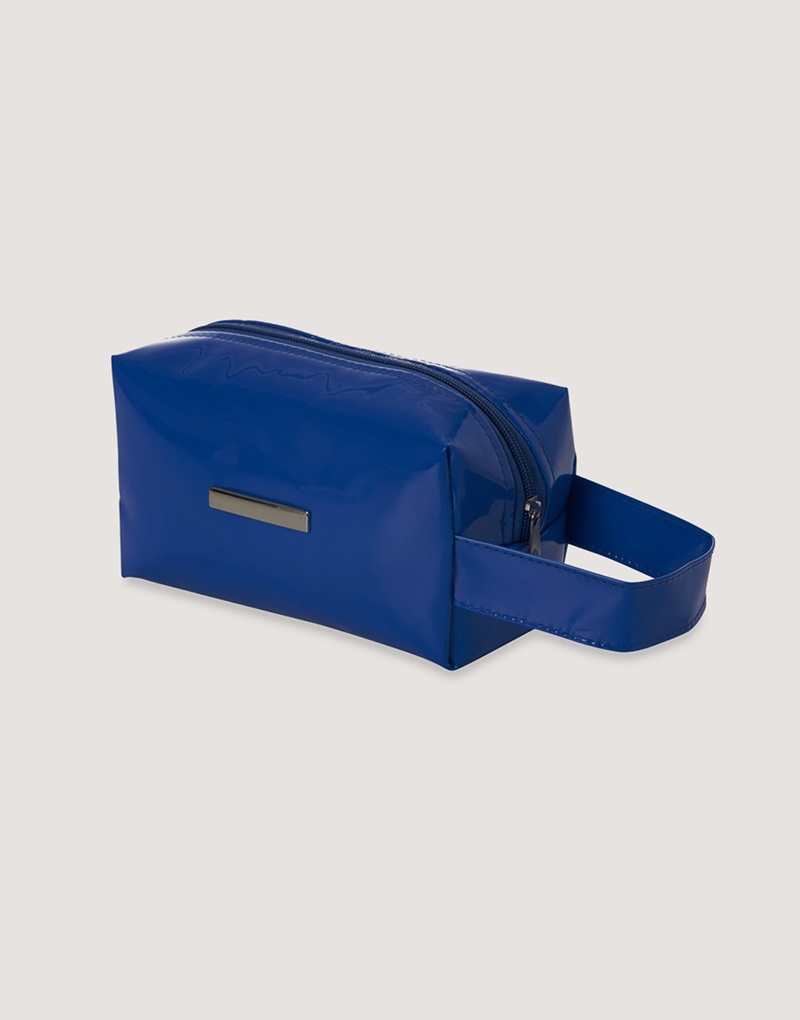 Necessaire em Vinil Impermeável com Plaquinha Metálica Personalizável e Alça de Mão Lateral