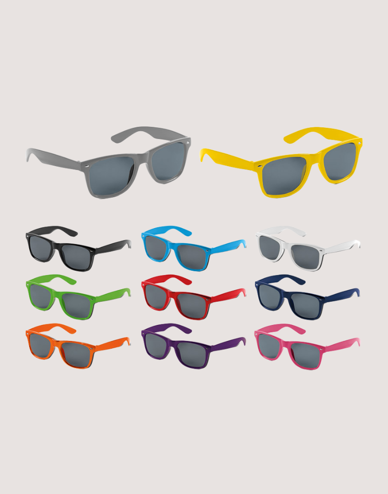 Óculos de sol em PC. Lentes de categoria 3 com UV400 de proteção, em conformidade com as normas EN ISO 12312-1. Disponível numa variada gama de cores.