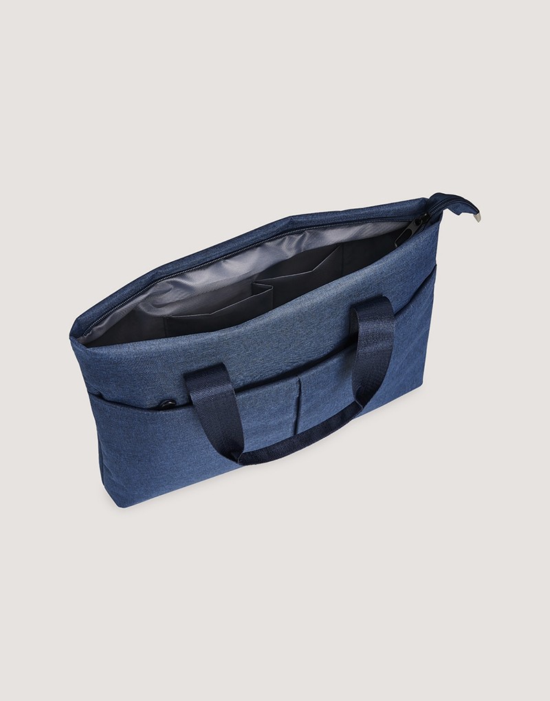Descrição: Pasta para notebook 15 em poliéster resistente à água com dois compartimentos, sendo o principal para notebook com bolsos internos e um compartimento frontal.