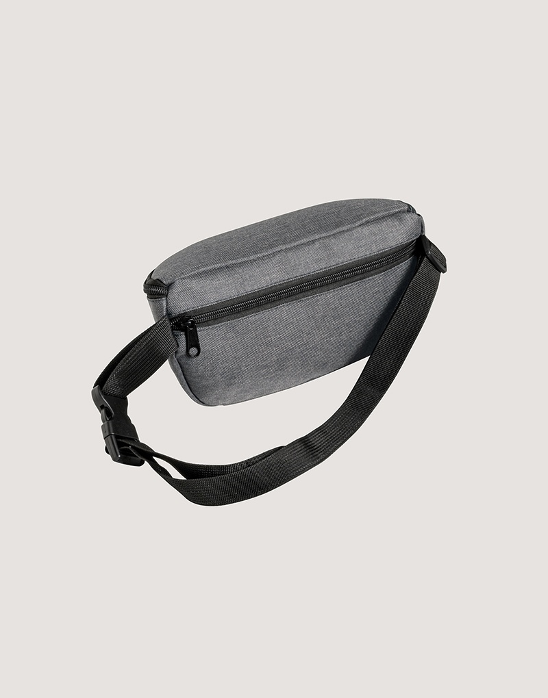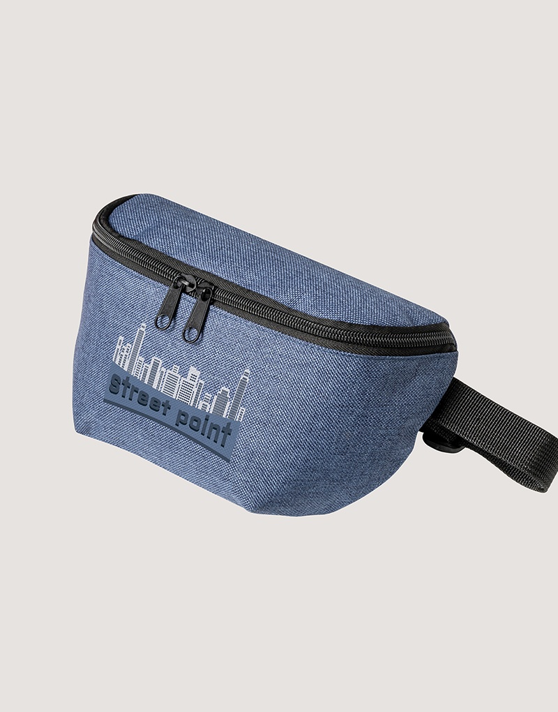 Pochete em 600D de alta densidade. Compartimento principal e um bolso com zíper na parte posterior. A bolsa tem alça ajustável em webbing.