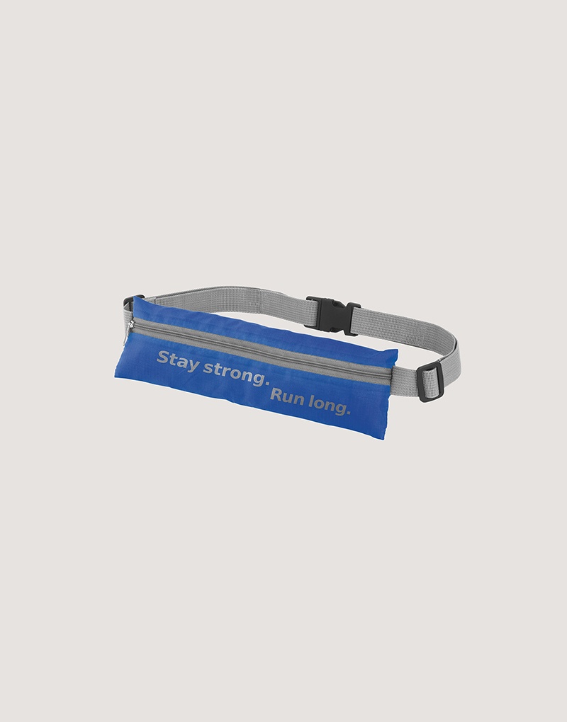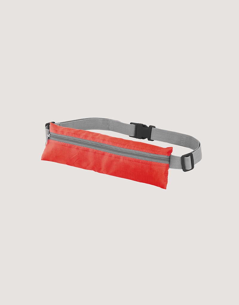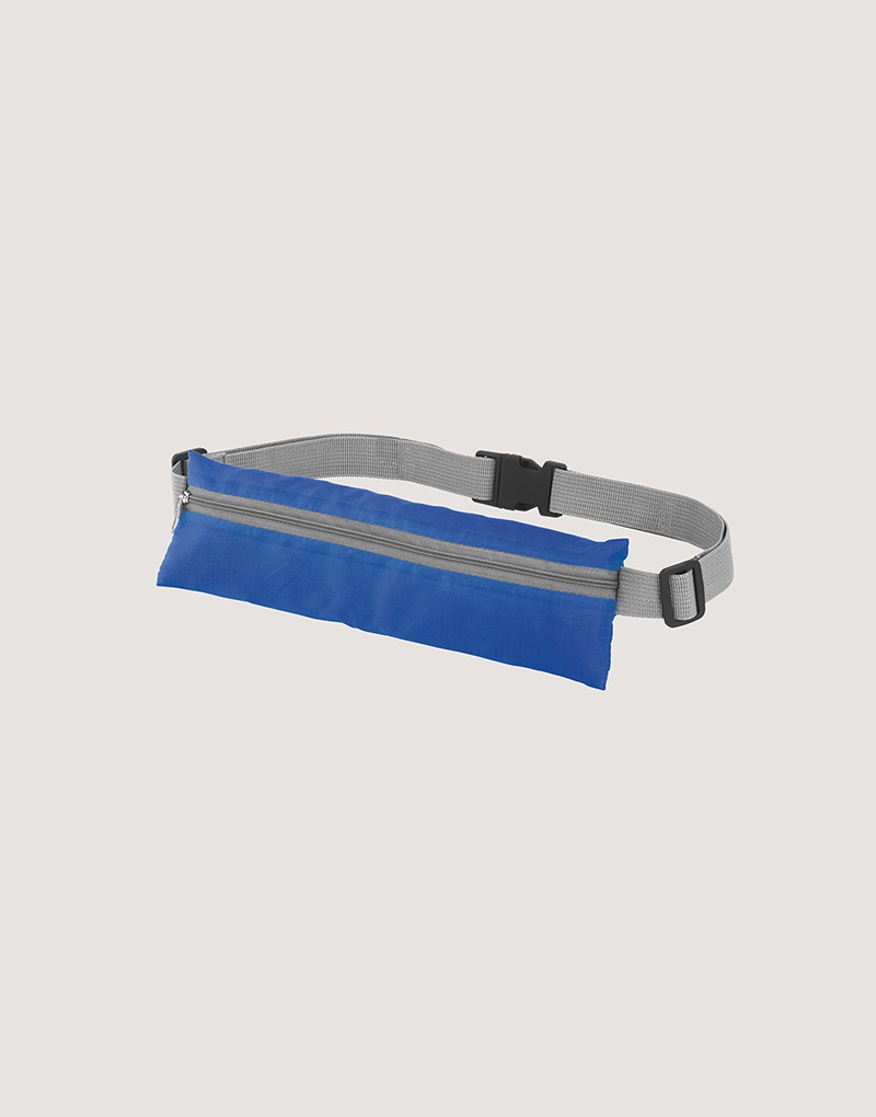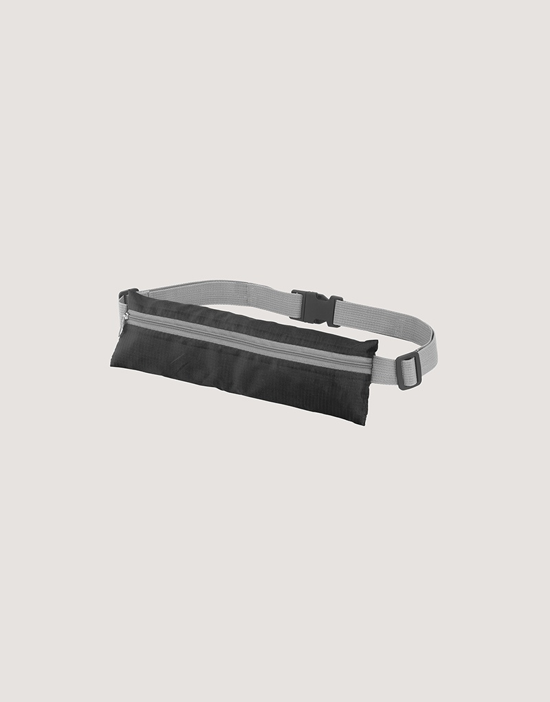 Pochete em 210D ripstop com saída para fone de ouvido. Bolsa com zíper e alça ajustável.
