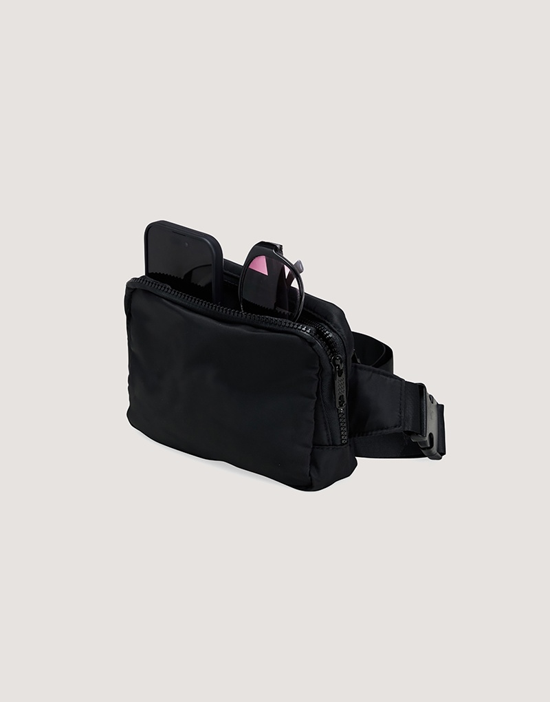 Confeccionada em nylon impermeável, oferece proteção contra a água, garantindo que os itens essenciais fiquem protegidos. Com dois compartimentos com zíper, sendo o principal com um bolso de malha elástica, é possível organizar dinheiro, chaves, fones de ouvido, maquiagens e muito mais. As alças ajustáveis permitem que ela seja usada de várias maneiras: na cintura, transversal ou como bolsa de ombro, oferecendo versatilidade e conforto.