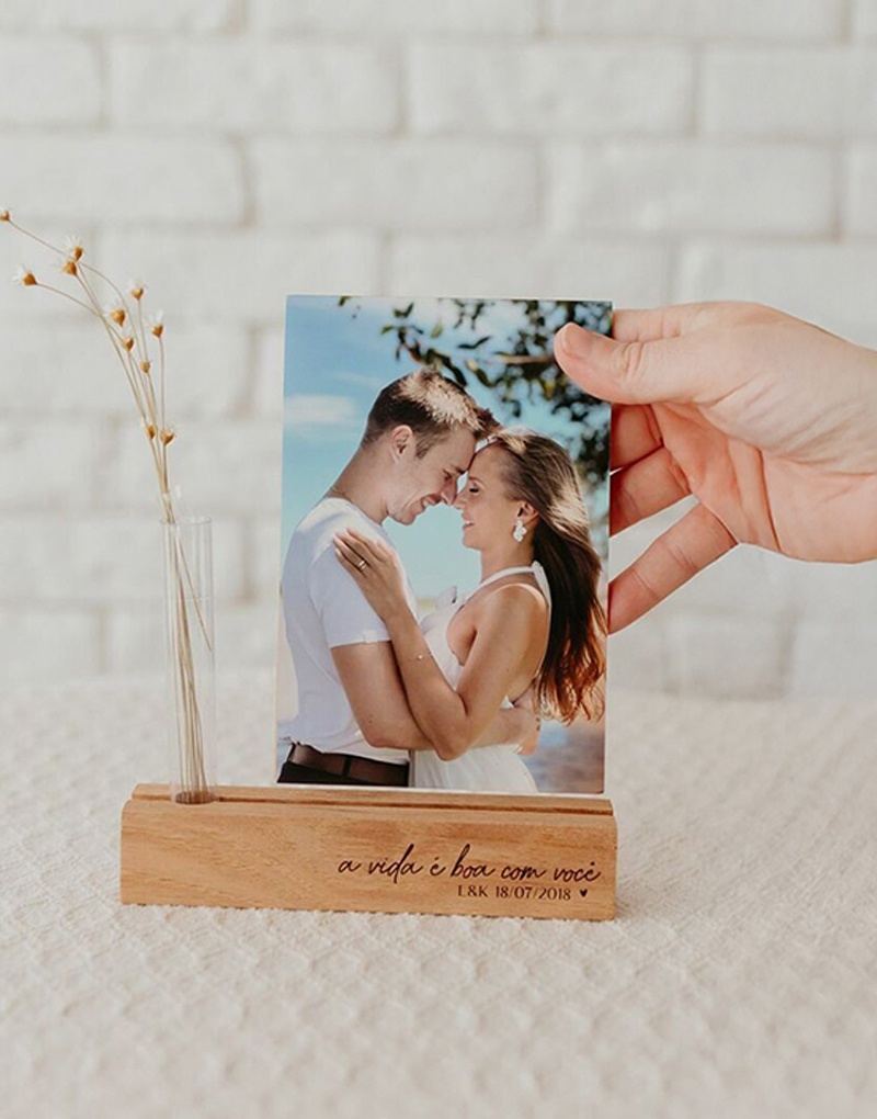 Porta-Retrato Sensível em Madeira com Vasinho Lateral27 de junho de 2025