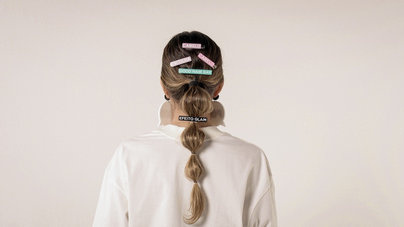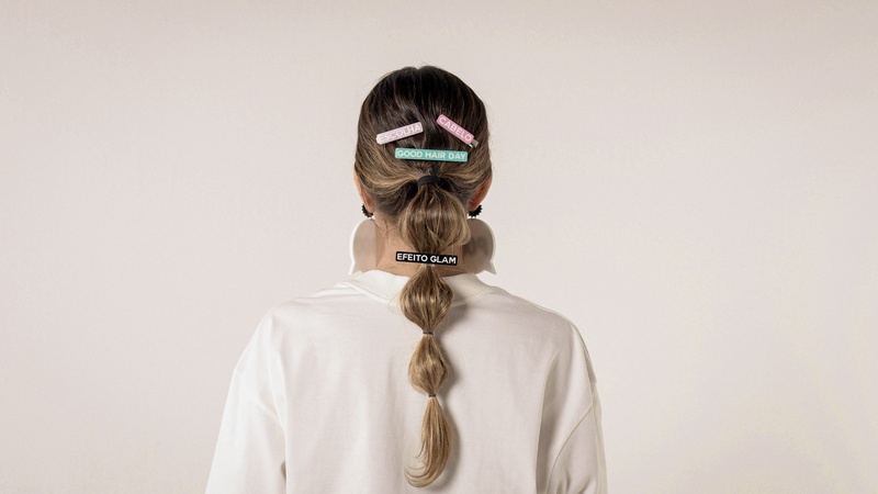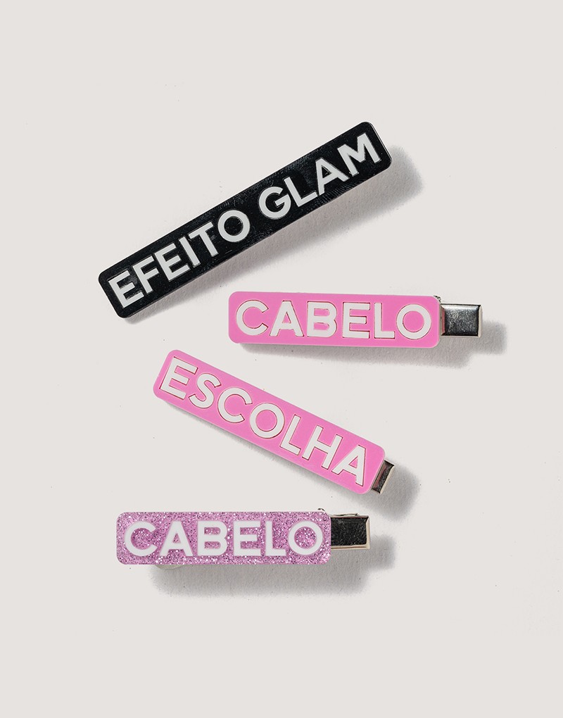 Presilha retangular com base resinada e letras aplicadas no centro. Um modelo versátil, ótimo para mensagens personalizadas com estilo jovem e criativo.