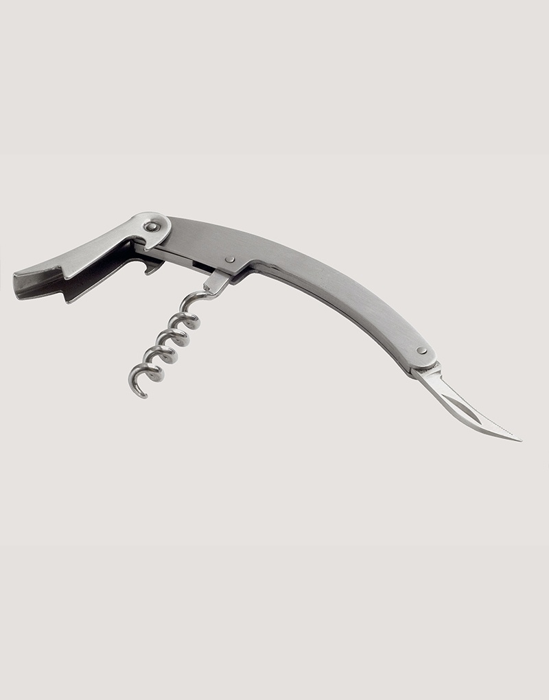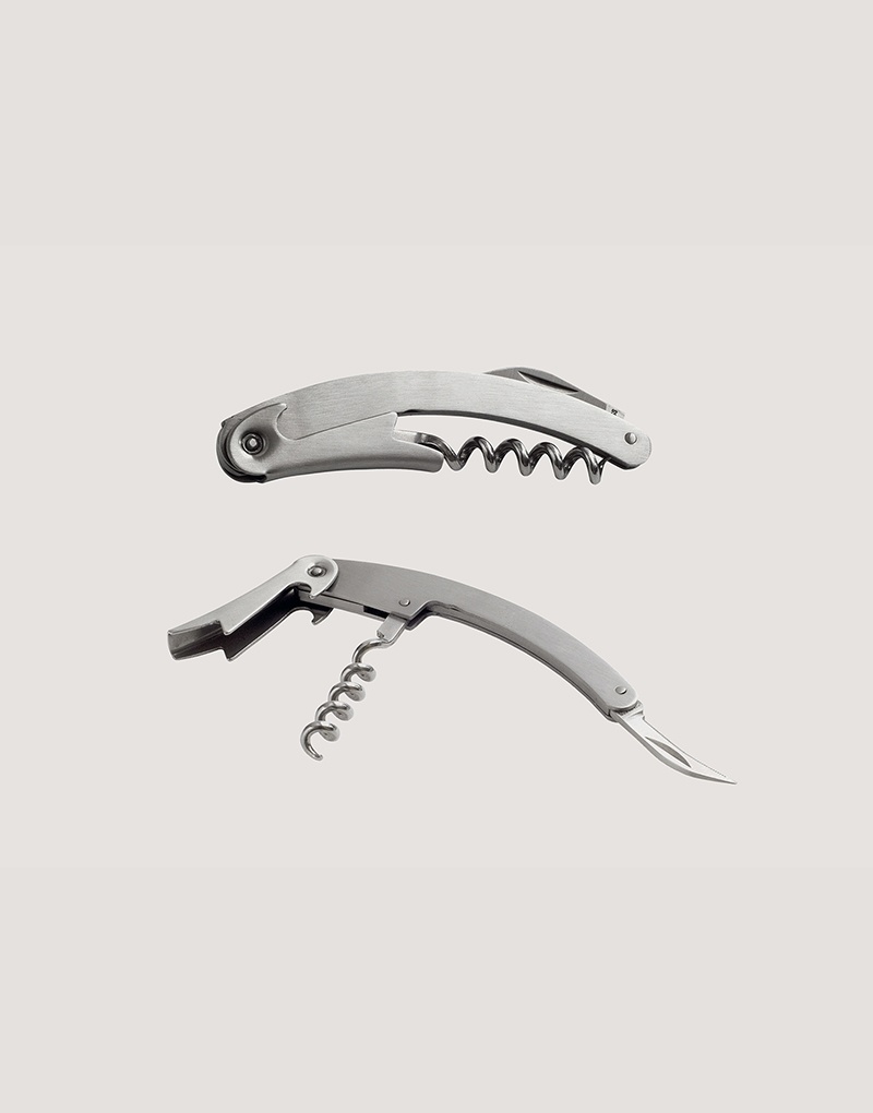 Saca-rolhas em metal com abridor de garrafas e canivete de sommelier.