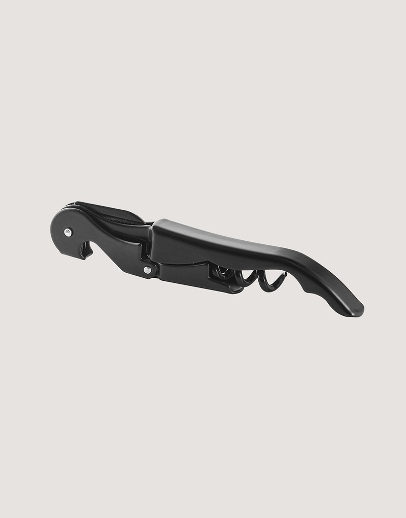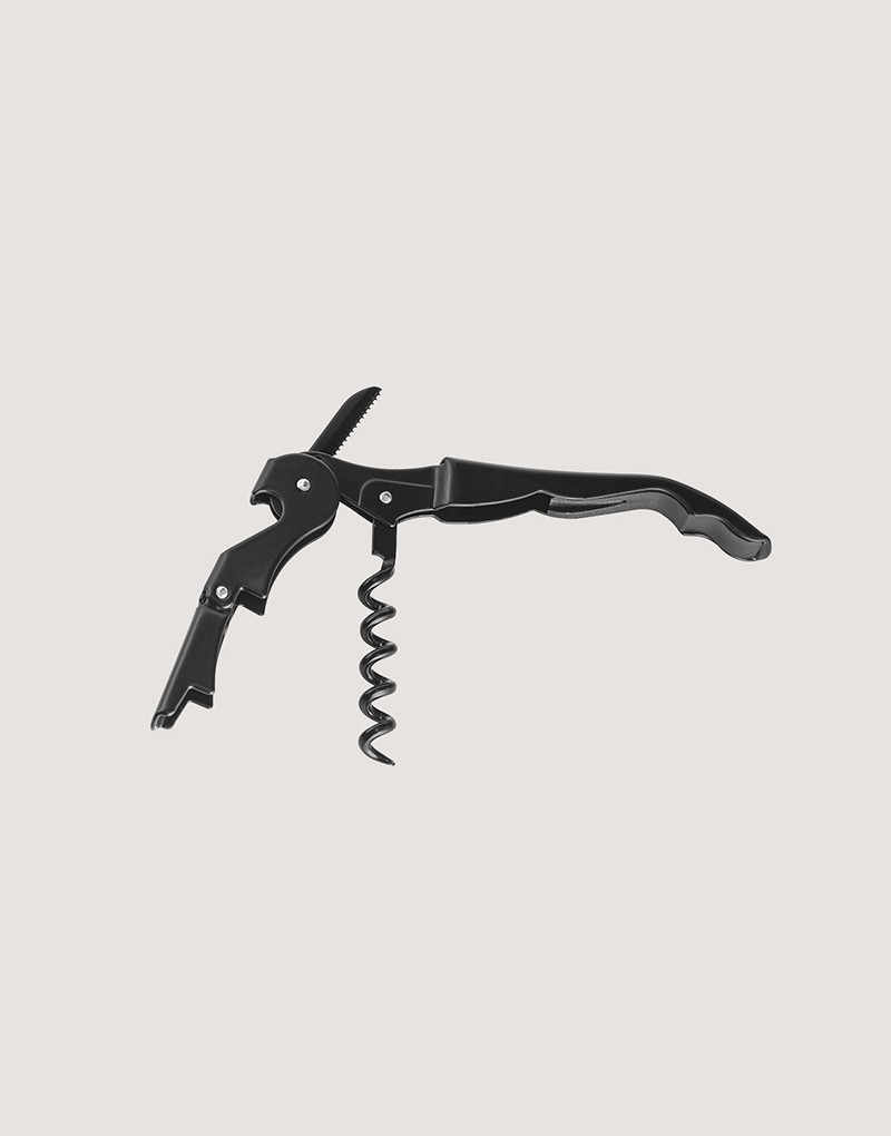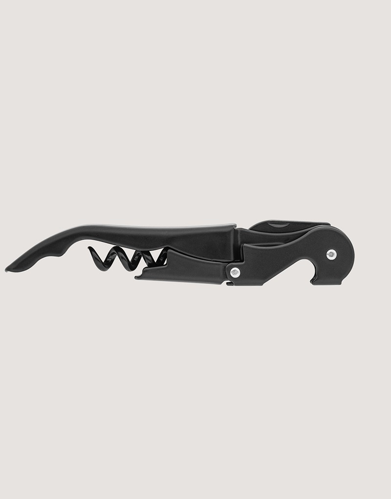 Saca-rolhas em metal e PP com abridor de garrafas e canivete de sommelier. Espiral em aço inox.