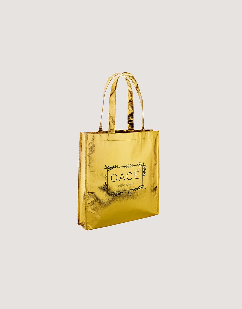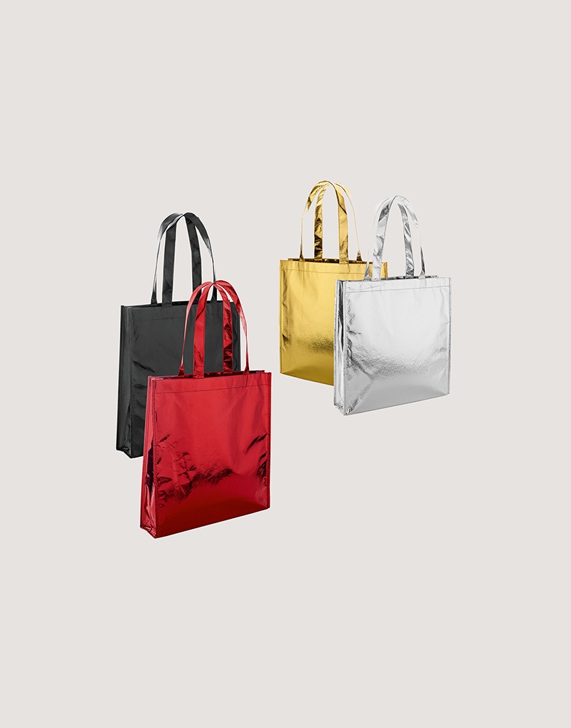 Sacola em non-woven laminado (90 g/m²) com alças de 50 cm e com laminação brilhante.