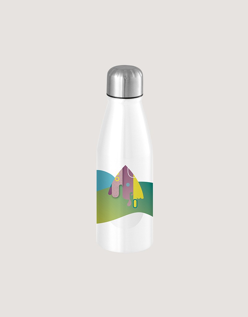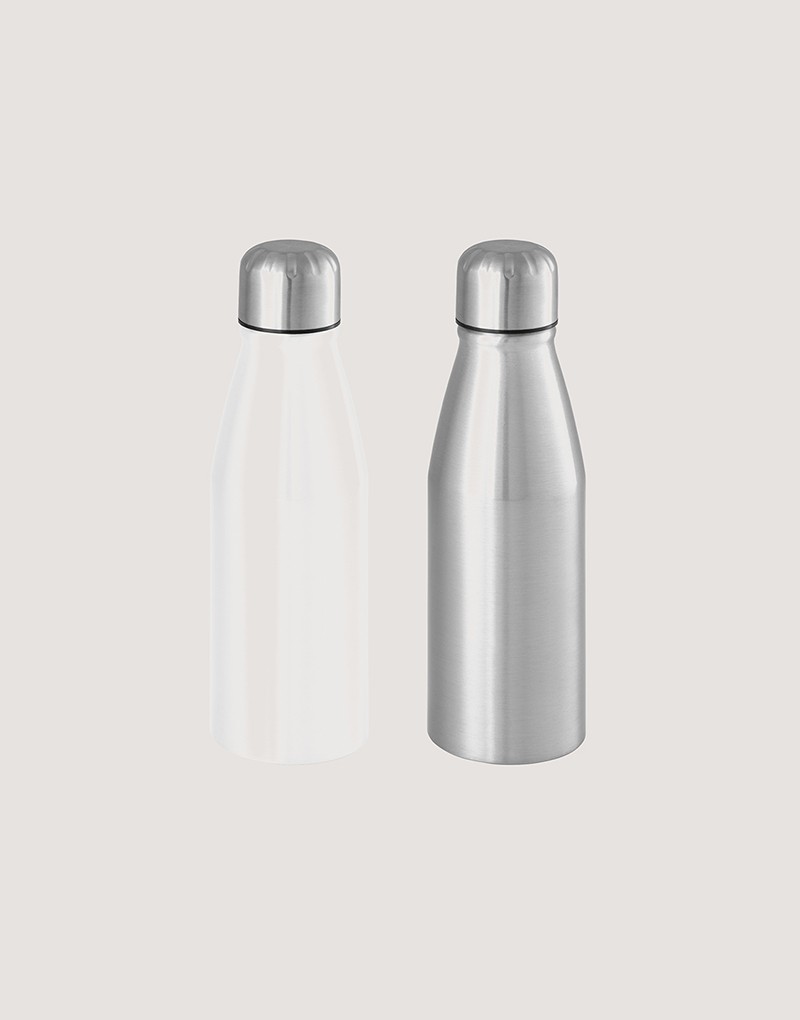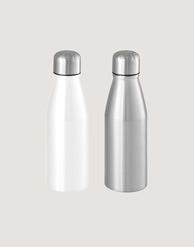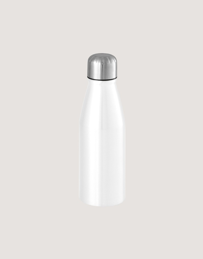 Squeeze para sublimação em alumínio com tampa em aço inox. Capacidade até 500 mL. Caixa branca 94657 vendida opcionalmente. Certificação EU Food Grade.