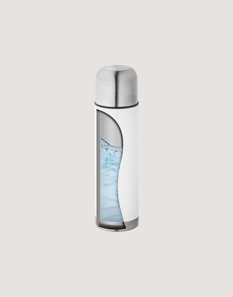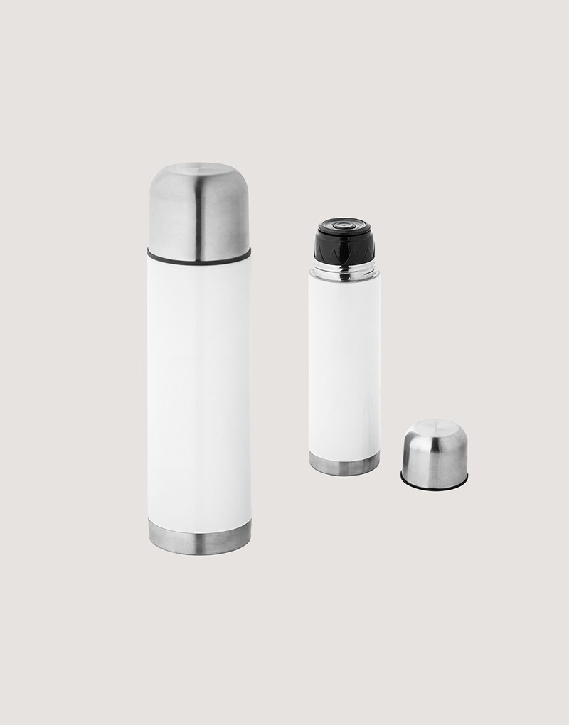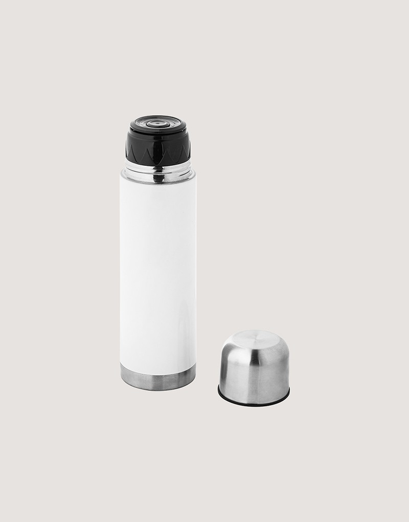 Garrafa para sublimação em aço inox de parede dupla térmica, isolada a vácuo. Tampa interior com sistema de botão abre e fecha dando maior isolamento e segurança contra vazamentos. O design da tampa vira um copo para que possa consumir a sua bebida preferida. Capacidade até 500ml. Mantém as bebidas quentes por 12h e frias por 24h. Fornecido em caixa presente. Certificação EU Food Grade.