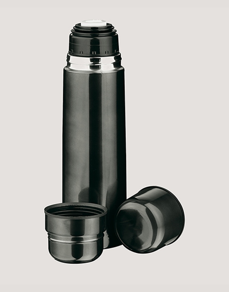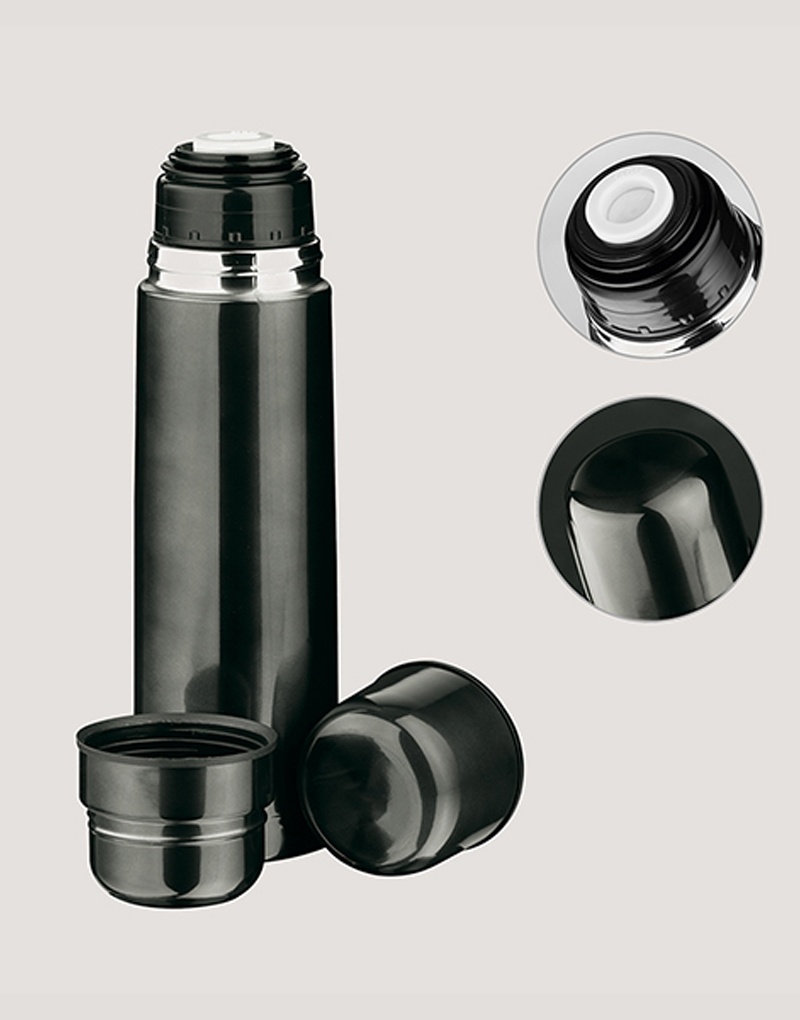 Garrafa em aço inox de parede dupla térmica, isolada a vácuo. Tampa interior com sistema de botão abre e fecha dando maior isolamento e segurança contra vazamentos. O design da tampa vira um copo para que possa consumir a sua bebida preferida. Capacidade até 750 mL. Inclusos 2 copos. Preserva as bebidas quentes por 12h e frias por 24h. Fornecida em caixa presente. Certificação EU Food Grade.