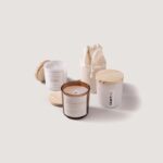Vela de cera branca em lata de alumínio, acabamento metalizado. tampa de rosquear. rótulo adesivo customizável.